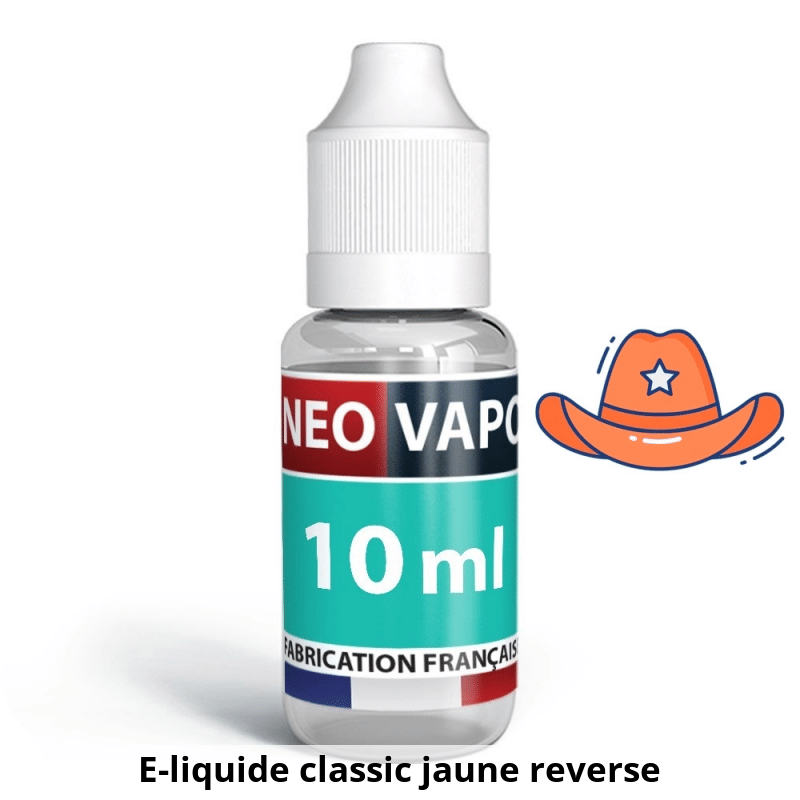 Le e-liquide Classic Jaune Reverse est formulé avec une base de classic blond et propose un dosage de 4 mg/ml de nicotine.