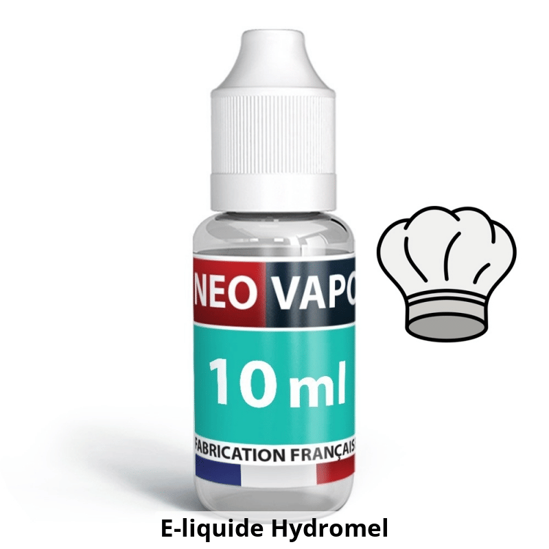 Le e-liquide Hydromel est proposé dans un flacon de 10ml et contient un mélange d'arômes, y compris le goût du palet breton, de la vanille, de la chantilly, ainsi que des arômes de raisin et de cassis.